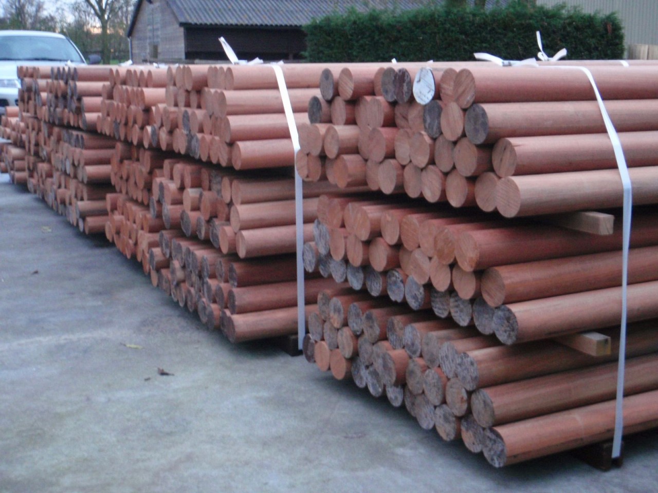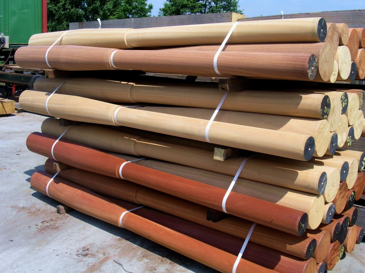 Maten: Ø 800mm x 21500mm Gewicht: 15000kg Houtsoort: Azobé